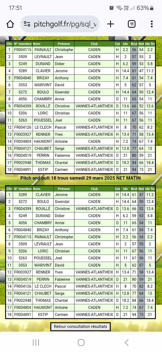 Compétition 18Trou Caden 29 juillet 2025